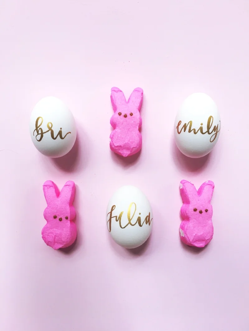 Hosting an Easter Brunch? Why not use eggs as place cards? Just grab a paint pen and get to writing! P.S. this idea only came about after a failed attempt to paint eggs with acrylic paint. Woops. Note-to-self: acrylic paint does not dry on eggs.